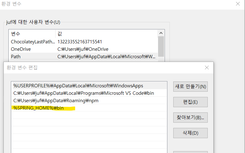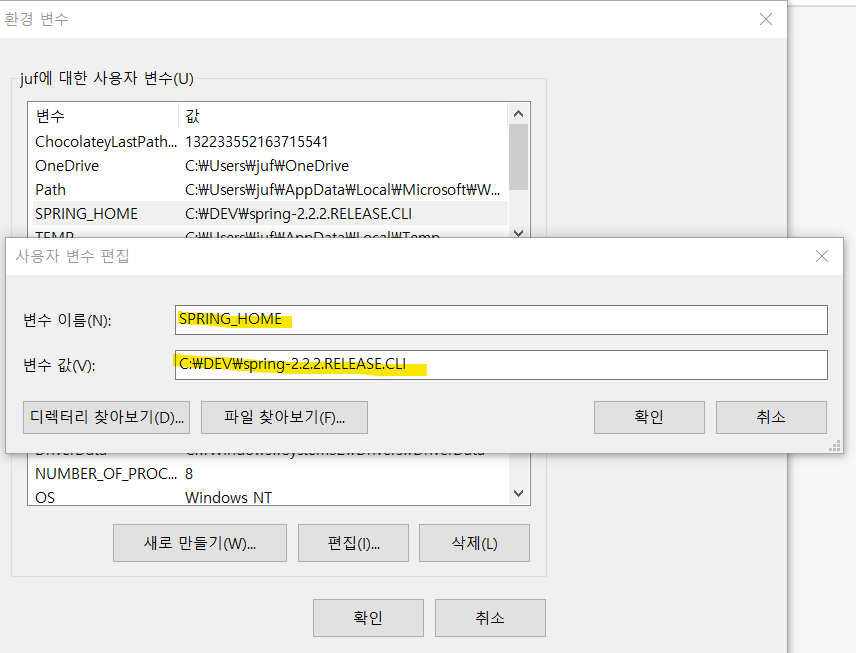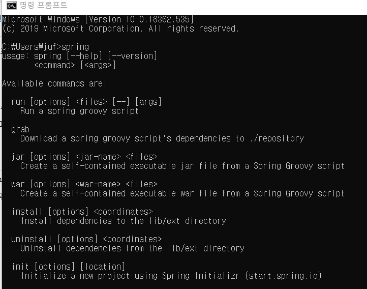 그 후 cmd 에서 spring 입력하면 명령 가능 ~~