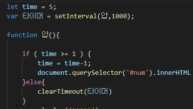 var 타이머 = setInterval(얍,1000);
