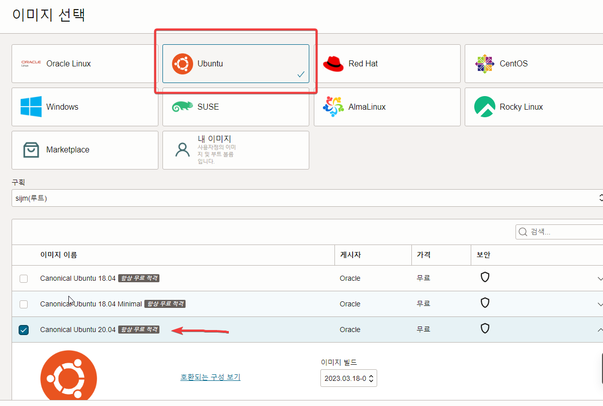 이미지 우분투로 변경