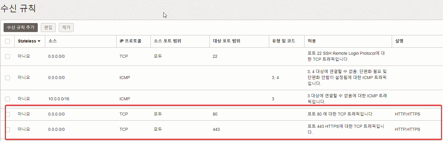 HTTP, HTTPS 포트 80, 443