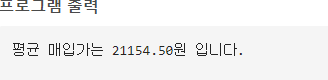 print(f"평균 매입가는 {average_price:.2f}원 입니다.")