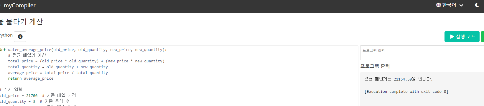 # 평균 매입가 계산