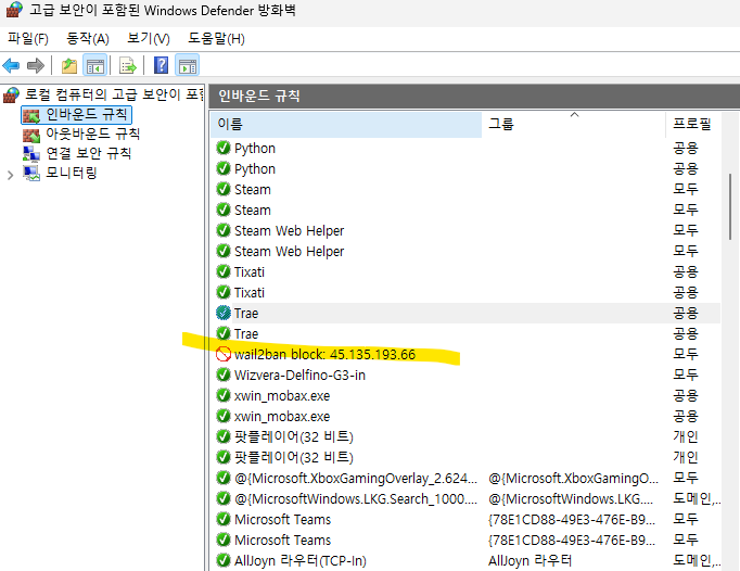 무작위 접속하는 녀석 방화벽에서 차단..